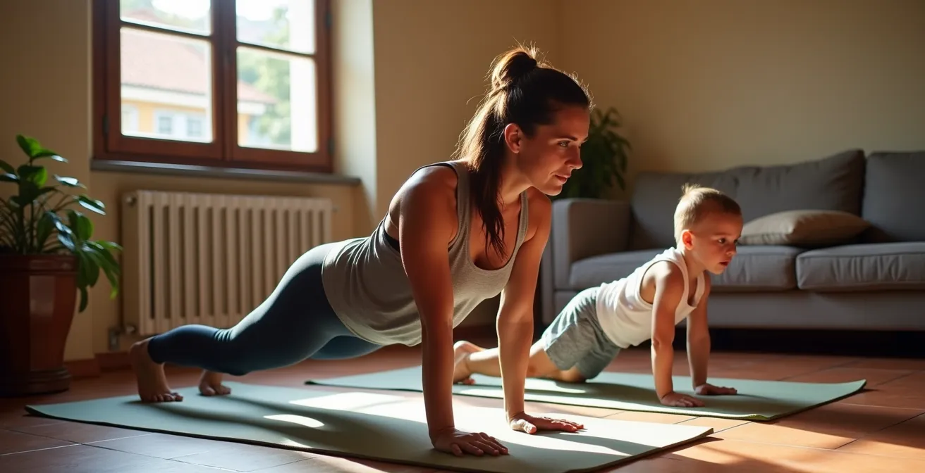 Per i genitori, un’altra preoccupazione è il rumore. Saltare o far cadere pesi non è un’opzione quando i bambini dormono. Esiste un intero protocollo di esercizi “silenziosi” che sono altrettanto, se non più, intensi. Focalizzarsi su movimenti lenti e controllati (come gli squat isometrici o i push-up modificati) aumenta la tensione muscolare e la fatica senza creare alcun disturbo. Ecco una routine silenziosa che potete eseguire in qualsiasi momento: