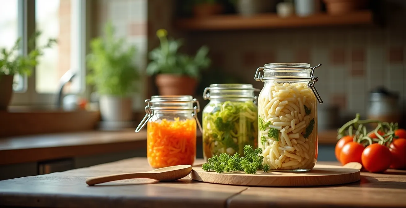 Quando pensiamo di “migliorare” la flora batterica, la nostra mente corre subito agli integratori probiotici. Eppure, la nostra tradizione culinaria ci offre un arsenale di alimenti fermentati vivi, molto più ricchi e complessi. Introdurli nella dieta significa “seminare” il nostro ecosistema intestinale con una varietà di microrganismi benefici. Non si tratta solo di kefir e crauti; la cultura italiana è ricca di opzioni che possono arricchire il microbiota in modo significativo.